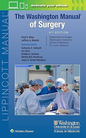 Focusing on must-know information in the broad spectrum of general surgery, The Washington Manual® of Surgery, 9th Edition, provides concise, high-yield content essential for surgical residents, attendings, medical students, and others who provide care for patients with surgical disease. Edited by Drs. Paul E. Wise and Jeffrey A. Blatnik, and written by teams of Washington University residents and faculty, this bestselling manual presents state-of-the-art, comprehensive information in a brief, outline format, along with numerous figures, tables, algorithms, and images throughout. In one convenient, portable resource, you’ll find practical coverage of all surgical subspecialties (thoracic, GI, colorectal, cardiac, vascular, breast, trauma, critical care, and more)—all at your fingertips for quick review and reference.